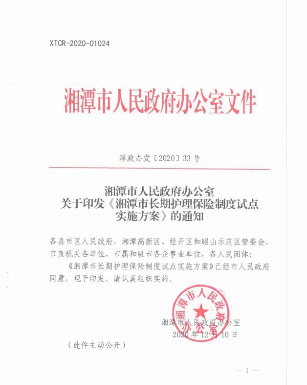 潭政辦發(fā)〔2020〕33號湘潭市人民政府辦公室關(guān)于印發(fā)《湘潭市長期護理保險制度試點實施方案》的通知