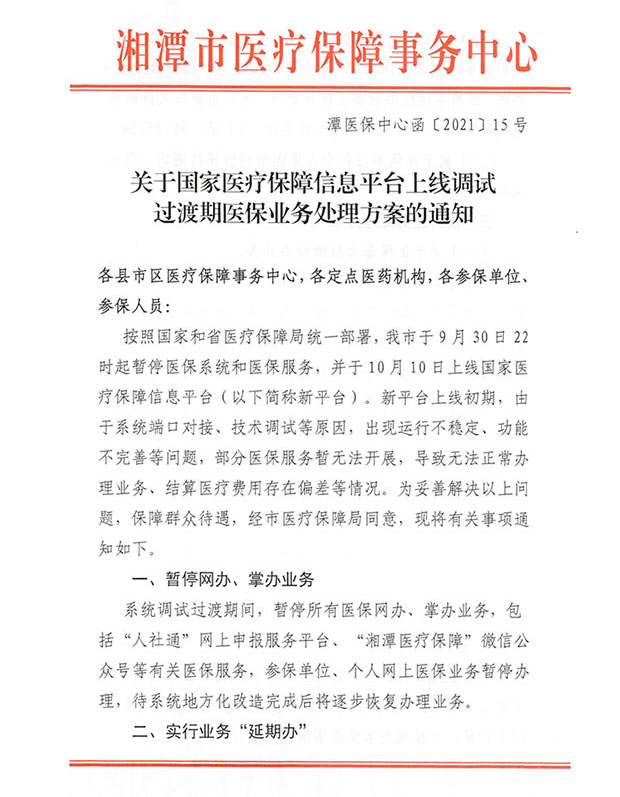 關(guān)于國家醫(yī)保平臺上線過渡期業(yè)務(wù)處理方案的通知